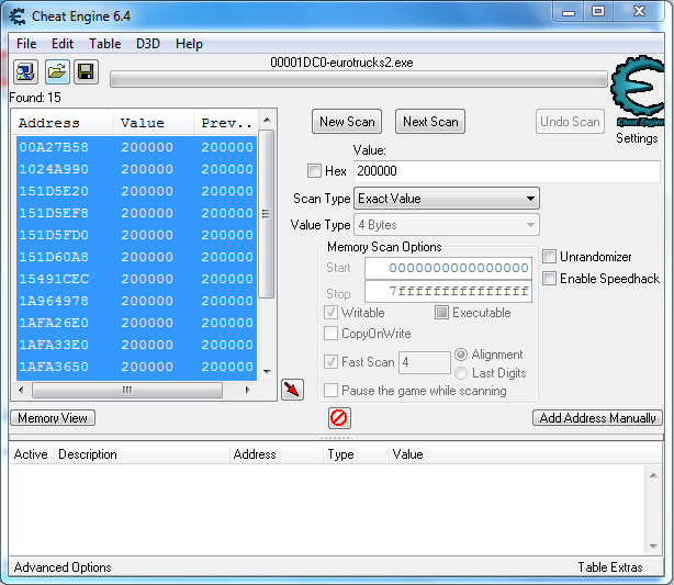 Program kurulumu bittikten sonra Euro Truck Simulator 2 oyunu açın ve alttaki resimdeki kısma kadar gelin sonra oyunu kapatmadan programımıza gelelim. ALT+TAB tuşu ile kapatmadan cheat engine programına geçiş yapabilirsiniz.