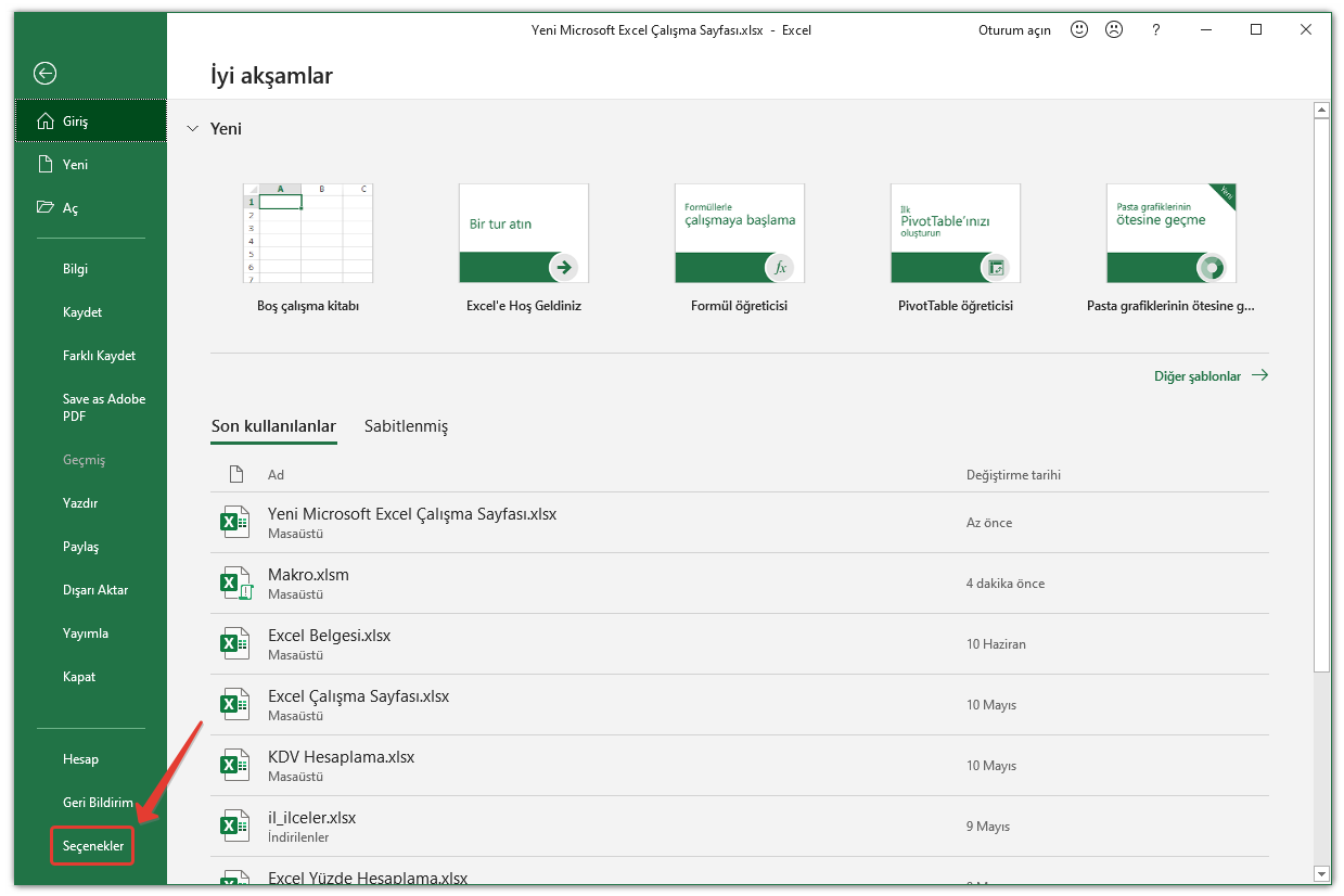 2- Ardından sol alt kısımda bulunan “seçenekler” kısmını seçelim.