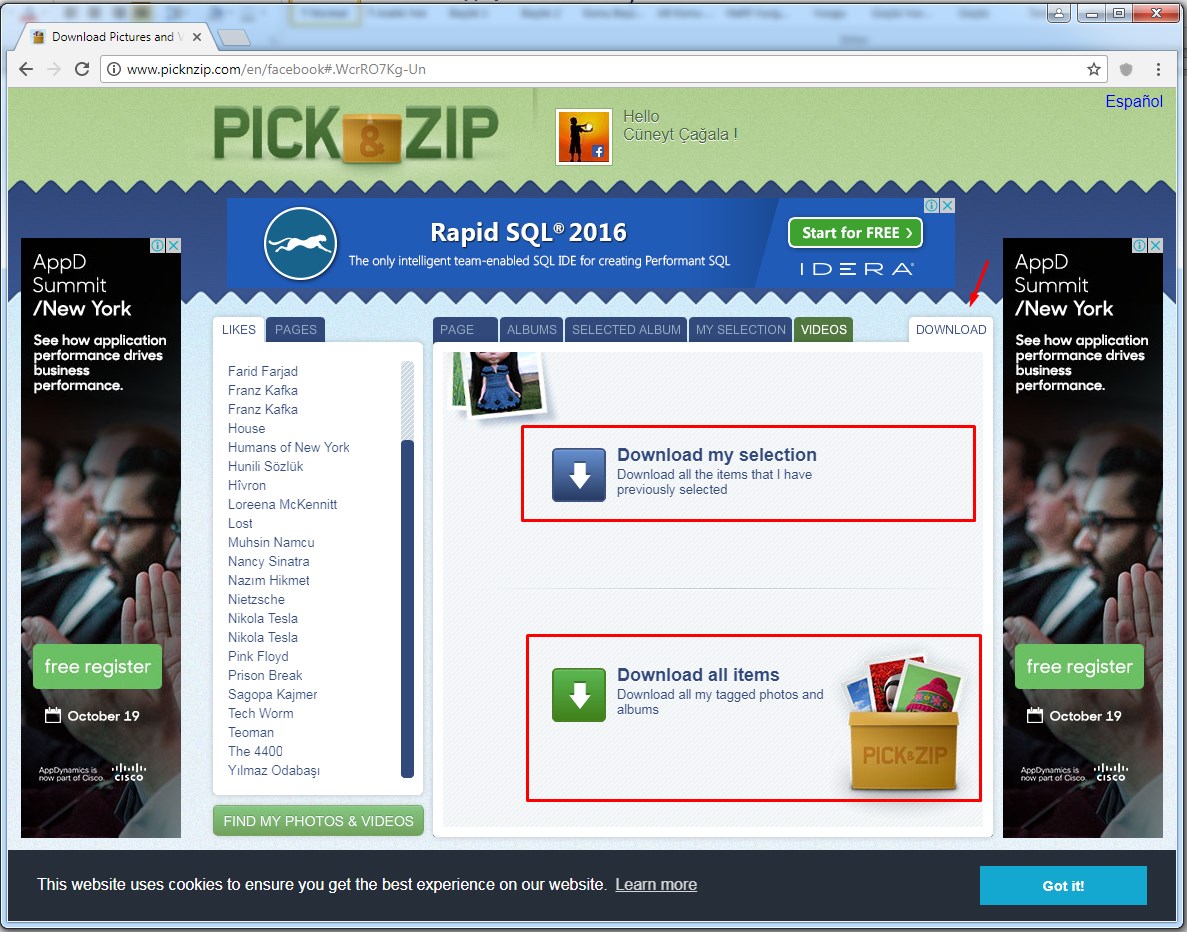 Facebook’a fotoğraf yüklemek olabildiğince kolay bir iş, ancak iş fotoğrafları/albümleri toplu hale indirmeye geldiğinde aynı kolaylık pek mümkün değil. Özellikle arkadaşlarınızın fotoğraflarında etiketlenmişsenİZ durum dahada zorlaşıyor. Pick & Zip adlı web platformu uygulaması online bir şekilde facebook’tan fotoğraf indirmegörevini çok kolay bir hale getiriyor.