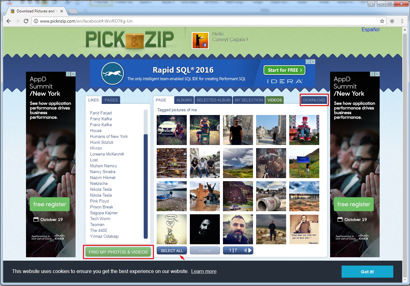 Pick & Zip ile kendiniz yüklemediğiniz fotoğrafları –yani etiketlendiğiniz fotoğrafları bile- indirmeniz mümkün. Birkaç adımda göründüğünüz tüm Facebook fotoğraflarını kısa bir sürede yedekleyebilir, arkadaşlarınızın ve üye olduğunuz hayran gruplarının albümlerini hemen indirebilirsiniz.