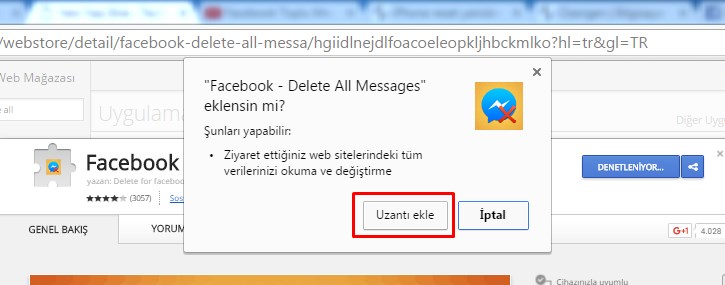 2- Buradadaki linki klikleyerek Facebook All Delete eklentisini aktif hale getirin! Yani altaki gibi CHROME’A EKLE seçeneğini seçin!