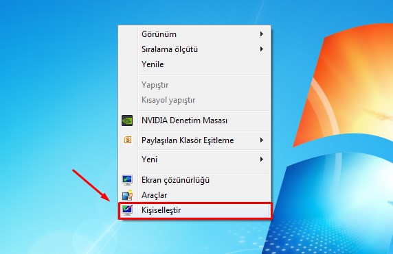 Bu yazımızda çok merak edilen fare simgesini değiştirme olayını anlatacağım. Fare imlecinin simgesini çok basit bir şekilde değiştirebiliriz. Programsız ve 1-2 adımda nasıl yapılacak görelim. Faremizin imlecini bilgisayarın masaüstünde iken boşlukta Sağ Klik yapıyoruz. Açılan pencereden Kişiselleştir’i seçiyoruz.