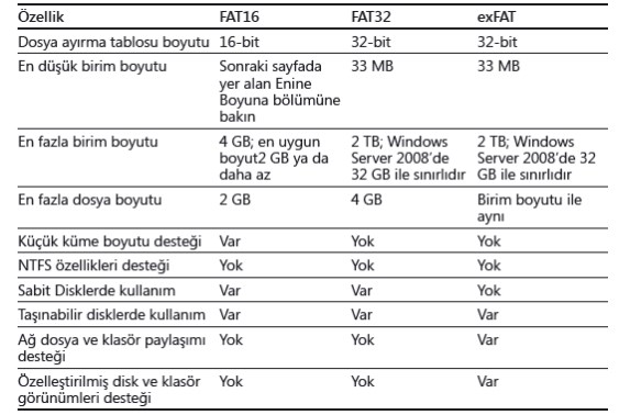 - Disketlerde ve taşınabilir disklerde FAT kullanabilirsiniz.
