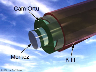 Fiber optik kablonun iç kısmına baktığımızda merkez, cam örtü ve kılıftan oluşur. Merkez ışığın hareket ettiği ince cam tabakadır. Cam örtü merkezin dışını saran optik malzemeden üretilmiş, merkezden yansıyan ışığı tekrar merkeze iletir. Kılıf ise kabloyu darbe ve neme karşı korur. Lazerden gönderilen ışın ilk olarak doğrusal bir yol izler ama kablonun kıvrıldığı noktada; ışık cam örtüye çarpıp geri yansır bu şekilde yansıya yansıya merkezdeki yoluna yavaşlayarak ve bir miktar kayba uğrayarak da olsa devam eder. Bu sebepten dolayı fiber kablolar fazla kıvrım yapmadan genellikle düz bir yol izlemesi hızı ve kalitesi açısından önemlidir.