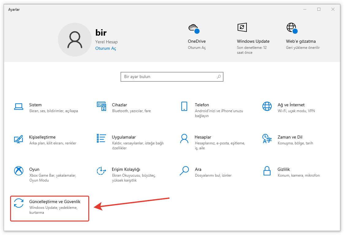 – Açılan pencereden “Güncelleştirme ve Güvenlik” sekmesine gidiyoruz.