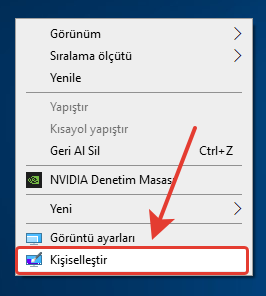 – Yukarıdaki programları yükledikten sonra yapmanız gereken ilk işlem Masaüstü simgelerini getirmek. Bunun için masaüstünde fare ile sağ tıklayıp “Kişiselleştir” diyoruz.