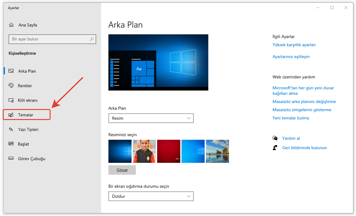 – Açılan pencerede “Temalar” sekmesini seçiyoruz.