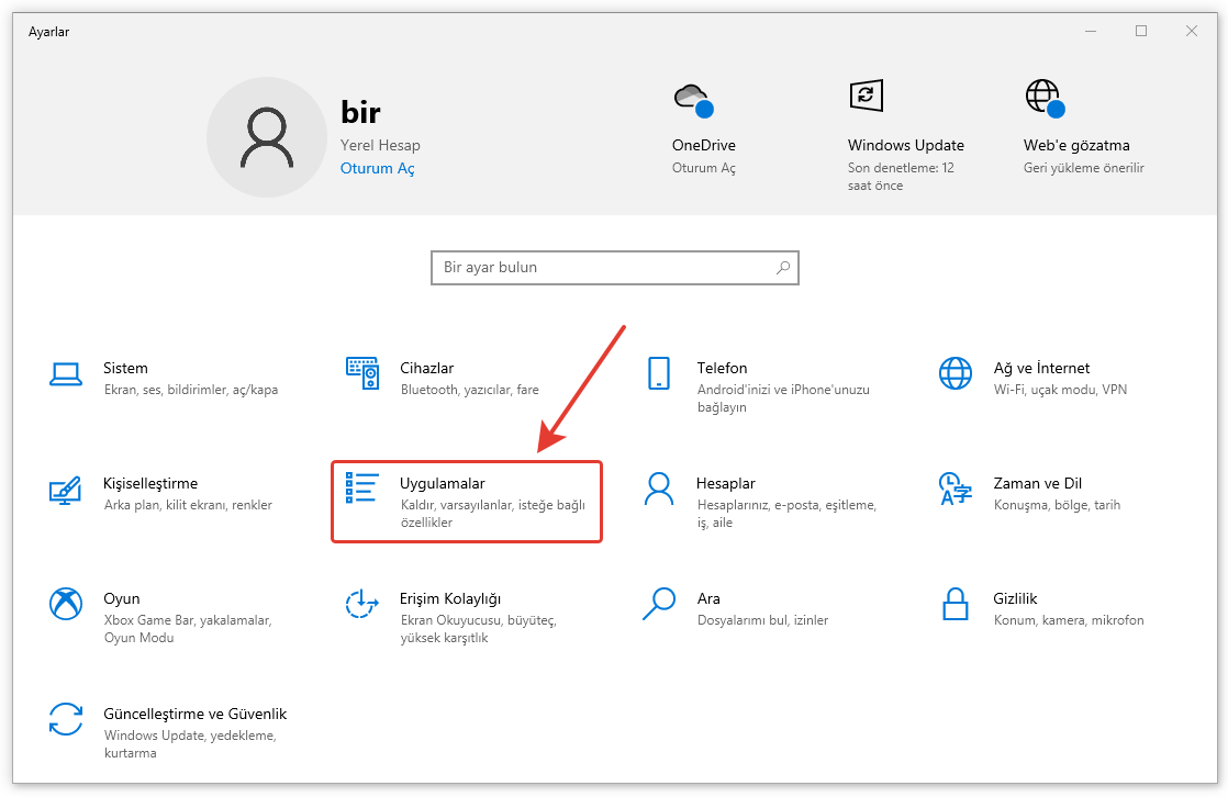 – Açılan pencereden “Uygulamalar” sekmesine gidiyoruz.