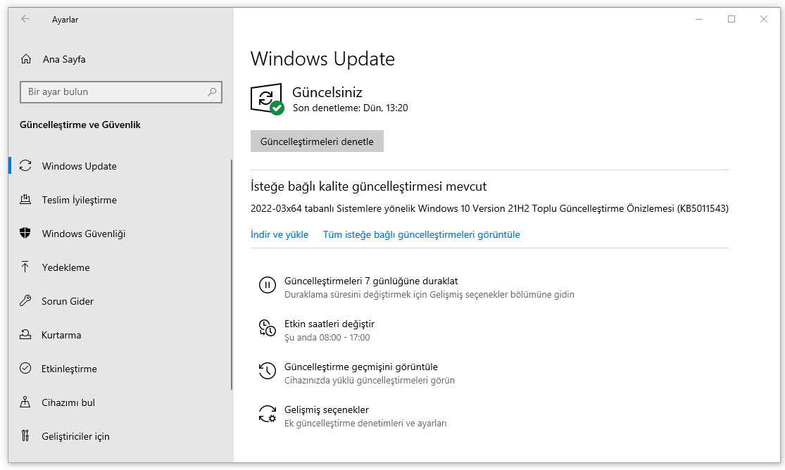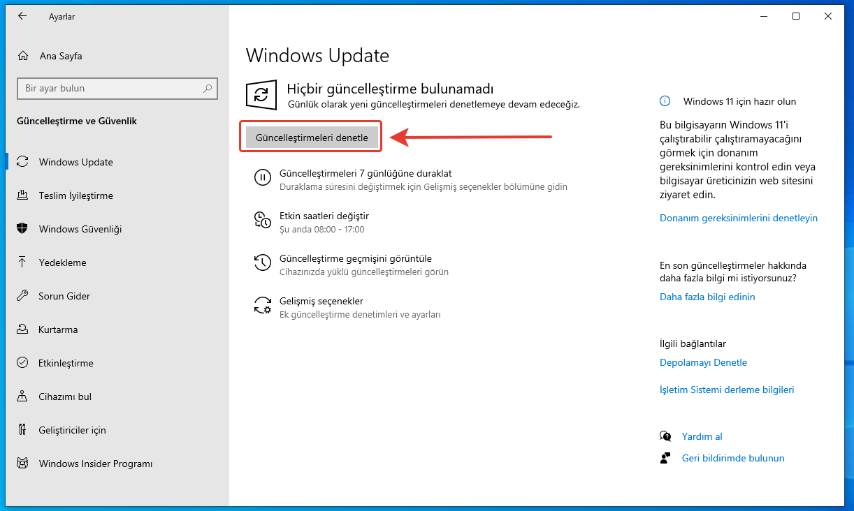 – “Windows Update” işleminden “Güncelleştirmeleri Denetle” uyarısı gidene kadar yüklemeleri yapmamız gerekiyor. Tüm sürücüler yüklendiğinde “Güncelsiniz” uyarısı belirecektir.