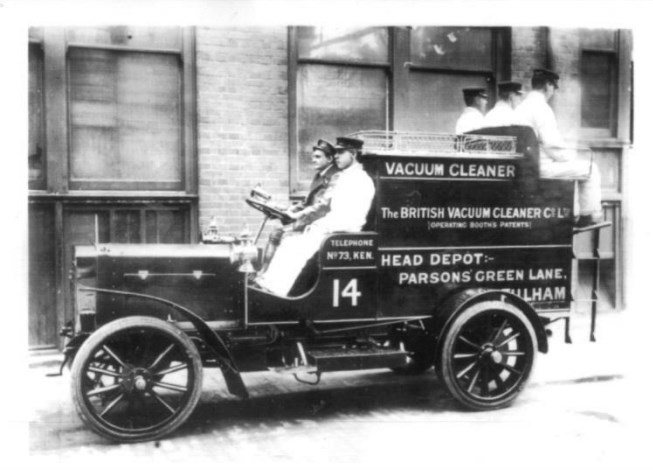 Vakumlu süpürgeyle evleri ücret karşılığında temizleyen araç (İngiltere-1910)