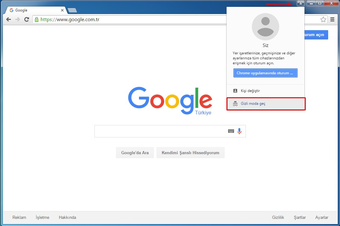 Google gizli modu açmak için aşağıdaki gibi yapmanız yeterli. Yada CTRL+SHİFT+N tuşuna basıp açabilirsiniz.