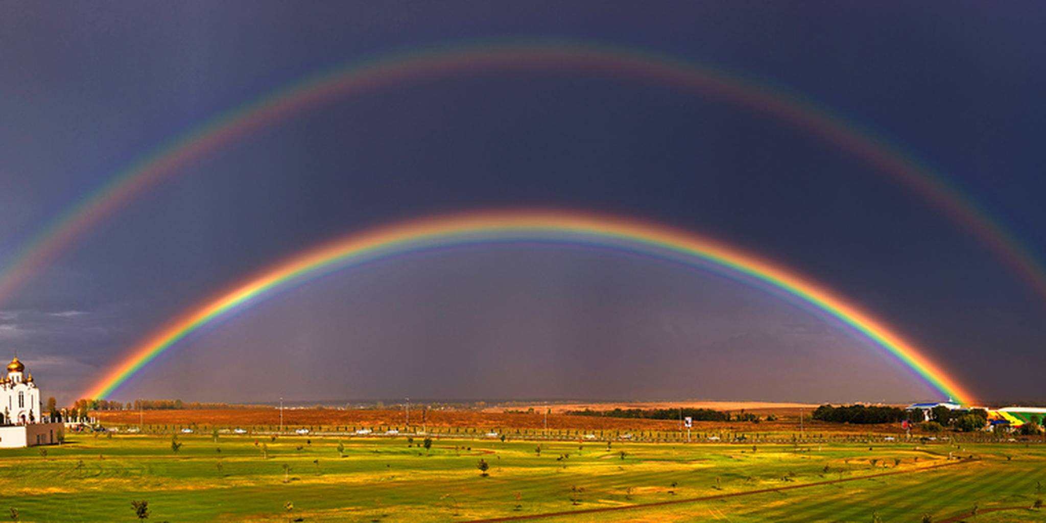 İkincil gökkuşağı (çift gökkuşağı) farklı yağmur damlalarından dolayı ikinci bir yansımadan kaynaklanır ve 50-53 ° ‘lik bir açı ile görüntülenir. İkincil gökkuşağındaki renk dizilişi birincinin tersi olur. İçte kırmızı, dışta mavi. İkincil gökkuşağı daha geniş bir alana yayıldığından birinciye oranla daha sönüktür. İki gökkuşağı arasındaki karanlık bölgeye ise ilk olarak Alexander of Aphrodisias tarafından tarif edildiği için “Alexander’s band” denir.