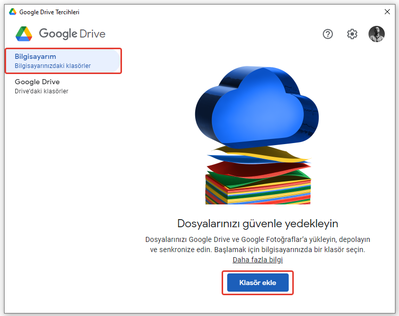 Kurulum bittikten sonra masaüstünüze gelecek olan Google Drive kısayolunu tıklayarak Gmail hesabımızla giriş yapalım. Arkadaşlar giriş yaptıktan sonra Bilgisayarım kısmında Google Drive adında bir sürücü göreceksiniz. Bu sürücünün içerisinde Drive’ım adında bir klasör olacak. Bu klasörün içeriğine dilediğiniz veriyi atabilirsiniz. Attığınız tüm veriler otomatik olarak bulut depolamaya senkronize edilmeye başlanacak.