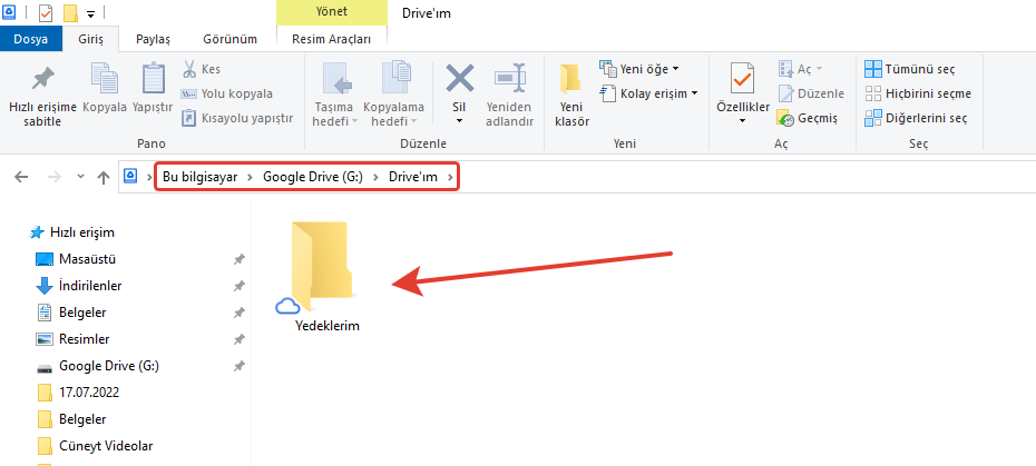 Google Drive uygulamasında bireysel olarak bilgisayardaki herhangi bir dosyayı veya belgeyi buraya yani Google Drive sürücüsünde Drive’ım klasörüne attığınızda otomatik Google Drive Bulut Depolamaya yedeklenmeye başlıyor. Buraya aktardığınız herhangi bir belge veya dosyaya başka bir telefon, tablet, bilgisayar gibi bir cihazdan istediğiniz zaman ulaşabilirsiniz. Bunun için doğrudan bir web tarayıcısı kullanabilir veya isterseniz cihazınıza kurduğunuz Google Drive uygulama veya programını kullanabilirsiniz. Bu tamamen size kalmış. Tavsiye olarak bu Drive’ım klasöründeki verilerinizi klasör klasör olarak gruplayarak kendinize kolaylık sağlamak.