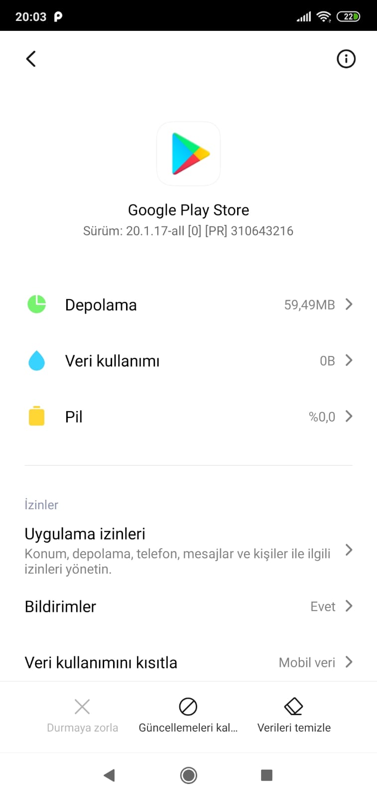 Google Play Store’a gittikten sonra ilk yapacağımız işlem; “Verileri Temizleme” demek, veriler temizlendikten sonra ikinci işlem olarak “Güncellemeleri Kaldır” diyoruz. Bu iki işlem sonrasında bu sayfadaki işlemimiz tamamlanıyor.
