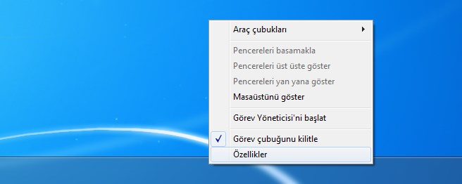 1- Görev Çubuğunun yeri değiştiyse yapacağınız işlem oldukça basit. Görev çubuğunun üzerine gelin ve sağ klik yapın. Özellikleri seçin.