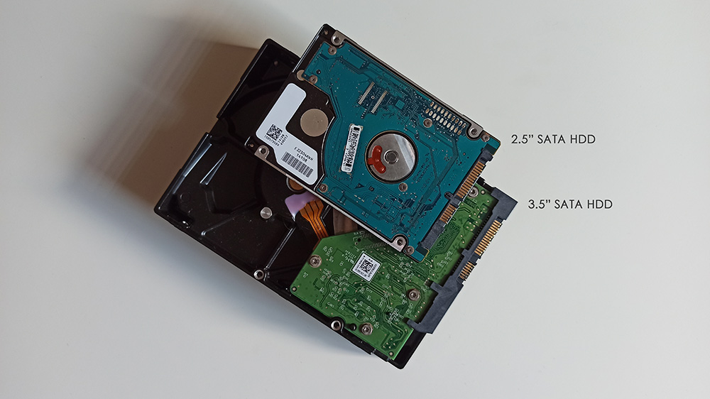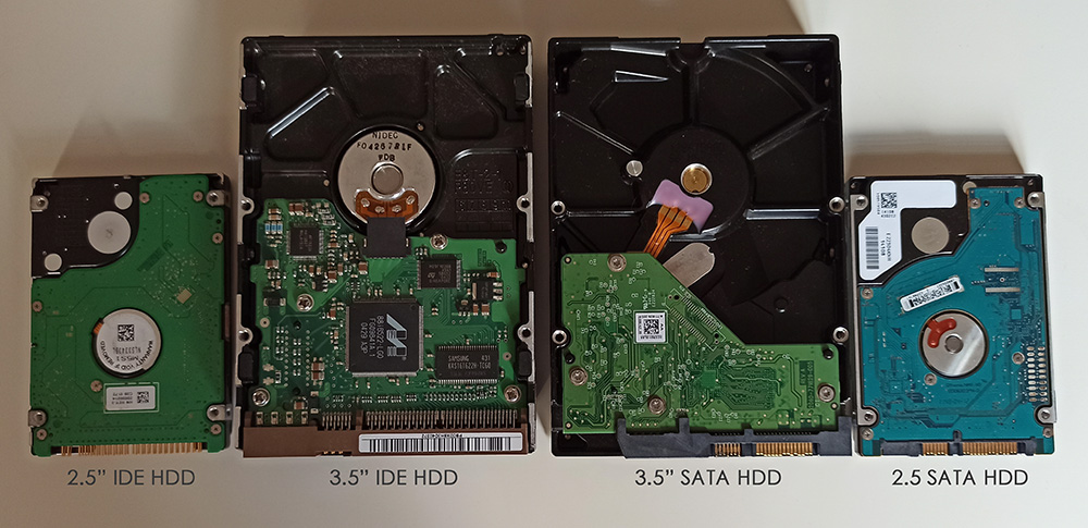 Bunlardan birincisi geçmişteki laptoplarda kullanılan Harddisk türü oluyor. Genel olarak 2.5” büyüklüğünde bir boyuta sahipler. İkincisi de benzer şekilde geçmişte kullanılan masaüstü bilgisayarlarda kullanılan Harddisk türü oluyor. Bunlarda genel olarak 3.5” büyüklüğünde bir boyuta sahipler.
