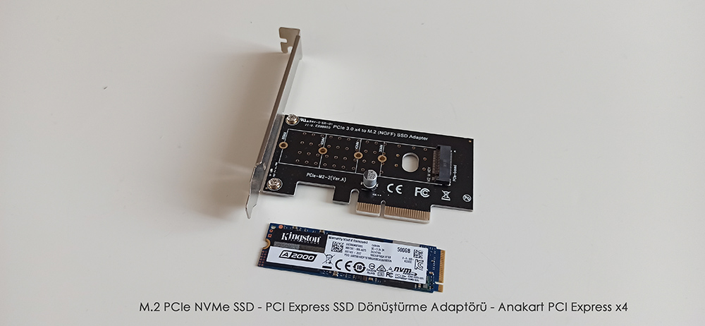 Hatta PCIe (PCI Express) genişleme yuvalarına dönüştürme aparatları takarak depolama aygıtı olarak kullanabilirsiniz. Bunun için internet ortamında 100-200 TL’ye bir çok dönüştürme aygıtı bulunuyor. Burada dönüştürme adaptörünü örneğin PCI Express x1 konnektörüne taktıysanız PCI Express x1’in hızı neyse o hızda verim alırsınız. Bu yöntemle dilediğiniz M.2 SSD’yi bilgisayarınıza takıp kullanabilirsiniz.