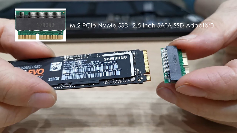 Bir M.2 SSD’yi dönüştürme adaptörleri kullanarak farklı formlara çevirebilirsiniz. Örneğin elinize bir M.2 PCIe NVMe SSD olduğunu düşünelim. Bu türü isterseniz 2.5 inç SATA SSD veya M.2 SATA SSD gibi formlara dönüştürmeniz mümkün.