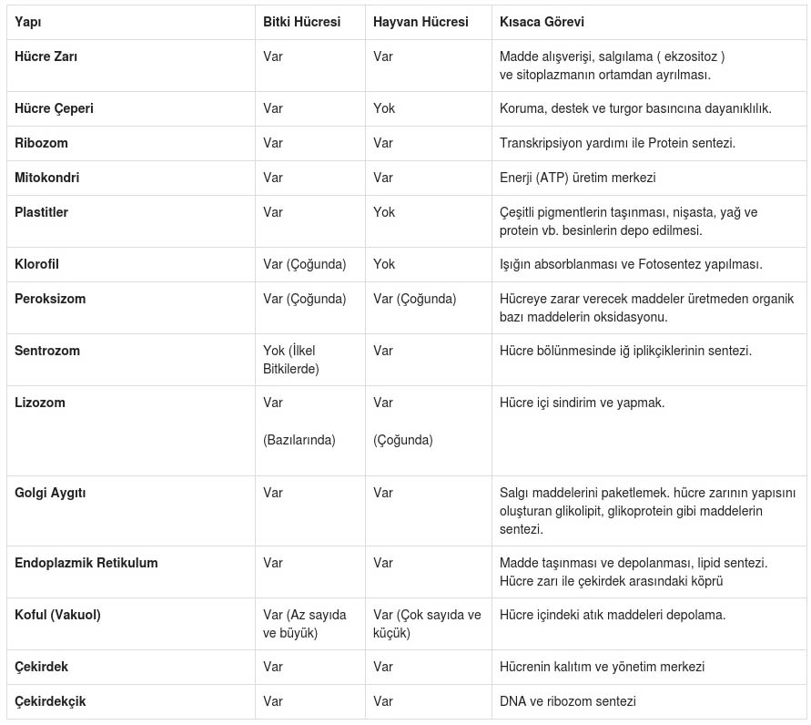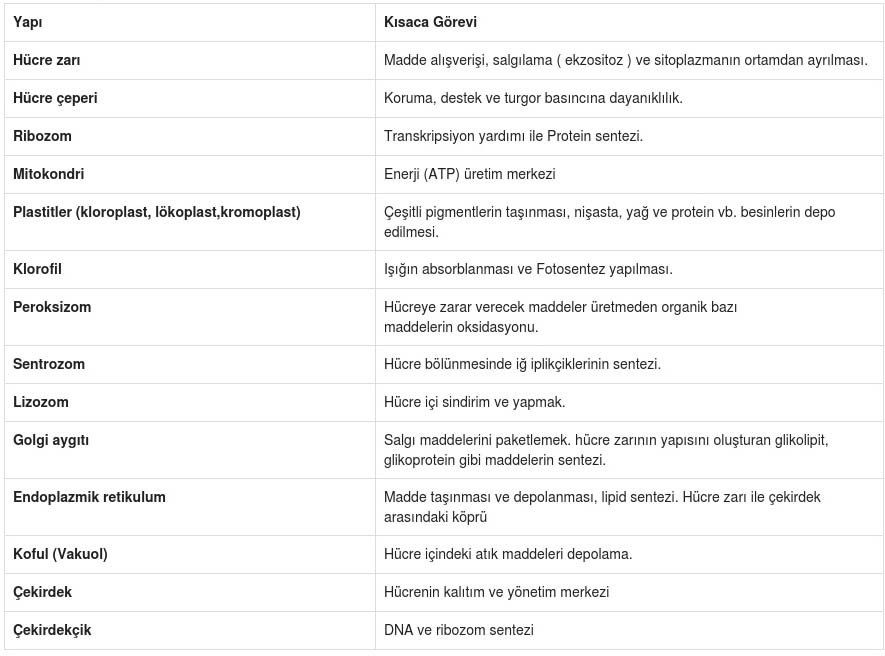 Hücre Organelleri ve Görevleri