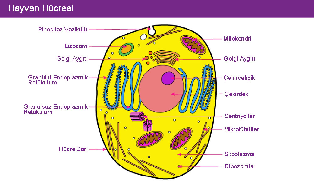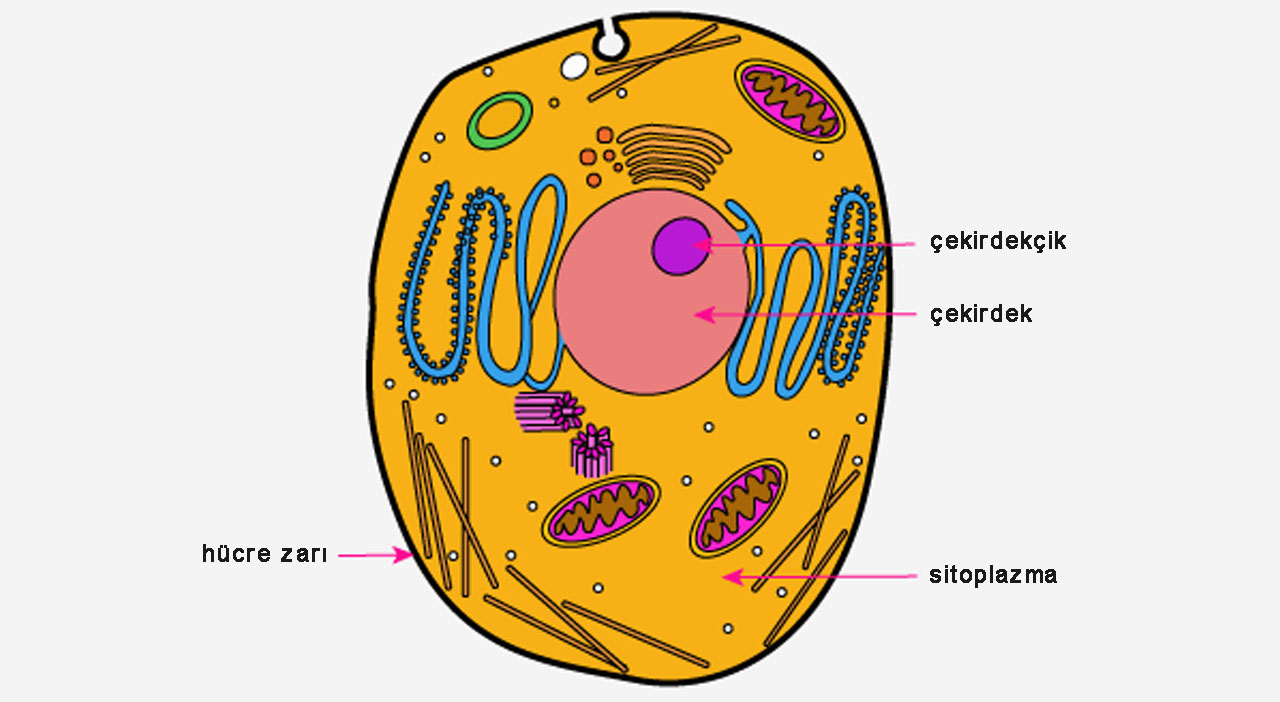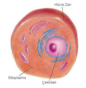 Hücreler, basit bir tanımla zar içerisindeki sitoplazma ve genetik bilgiyi çevreleyen bir çekirdekten meydana gelir ve ancak mikroskop yardımı ile görülebilirler. Bunlardan hücre zarı ve sitoplazma bütün hücrelerde bulurken çekirdek yalnızca gelişmiş hücrelerde bulunur.
