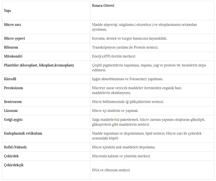 Hücre Organelleri ve Görevleri