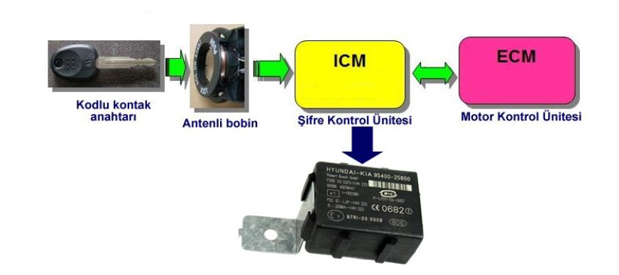 • Motorun çalıştırılmasını önleyen diagnostik şifredir. Alttaki resimde şifre kontrol ünitesi görülmektedir.