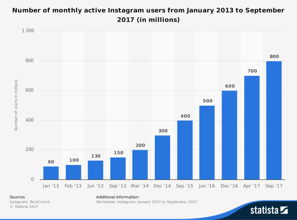 Kevin Systrom ve Mike Krieger tarafından kurulan Instagram 21 Nisan 2012 tarihinde Facebook, şirketi (ve 13 çalışanını) yaklaşık 1 milyar dolar nakit karşılığında satın aldı. Facebook’a satılmadan önce yaklaşık 30 milyon kullanıcısı olan Instagram’ın 2017 yılı itibarıyla 800 milyon kullanıcısı bulunuyor.