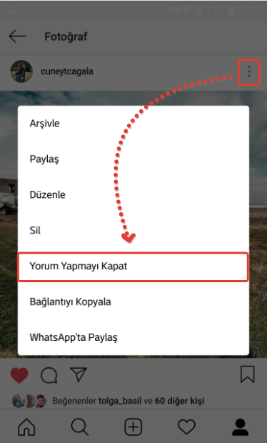 İnstagram Fotoğraf/Video Paylaşım Sonrasında Yoruma Kapatma