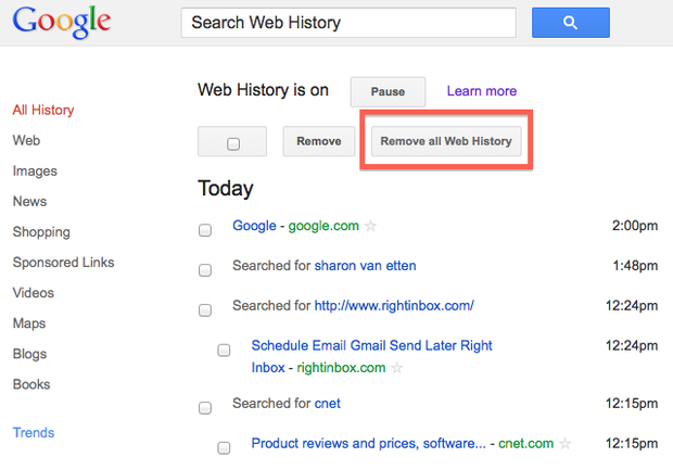Siz bilgisayarınızı alıp dinamitle havaya uçursanız bile bilgileriniz gmailinize ait hesaptaki web geçmişinde kalır. Bu işlemi bu kısımda yani gmail hesaplar kısmından silebilir veya geçmişi kaydetmeyi durdurabilirsiniz. Ancak Google yinede girdiğiniz sitenin saatini, nerden girdiğinizi, nasıl girdiğini, hangi siteden girdiğinizi kayıt eder.
