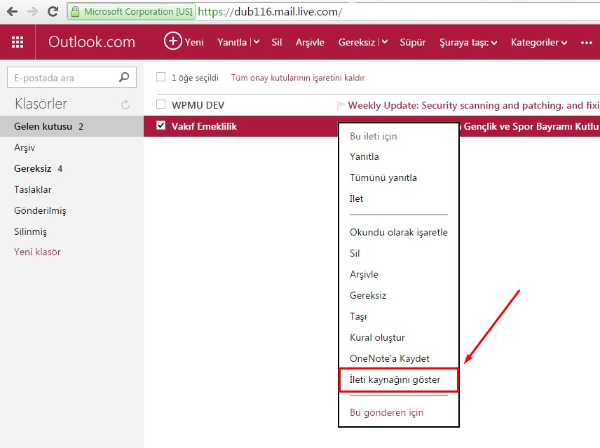 Örneğin illegal (yasadışı) bir suç işlediniz. Mesela bir mail ile bir kişiye hakarette bulundunuz diyelim. Ve takibi şikayete bağlı bir suç olduğu için kişi sizi mahkemeye verdi. Gönderdiğiniz maile ait bilgiler her zaman karşıdaki gönderdiğiniz hesaptan hangi tarihte, hangi IP ile görülebilir. Mesela Hotmail’de gelen mailin üzerini sağ klikleyerek gelen maile ait tüm bilgilere erişebilirsiniz.