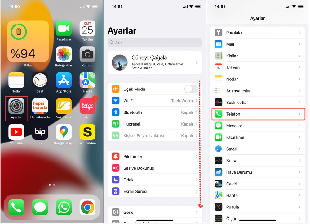– Öncelikle sırasıyla “Ayarlar” ardından “Telefon” sekmesine gidiyoruz.