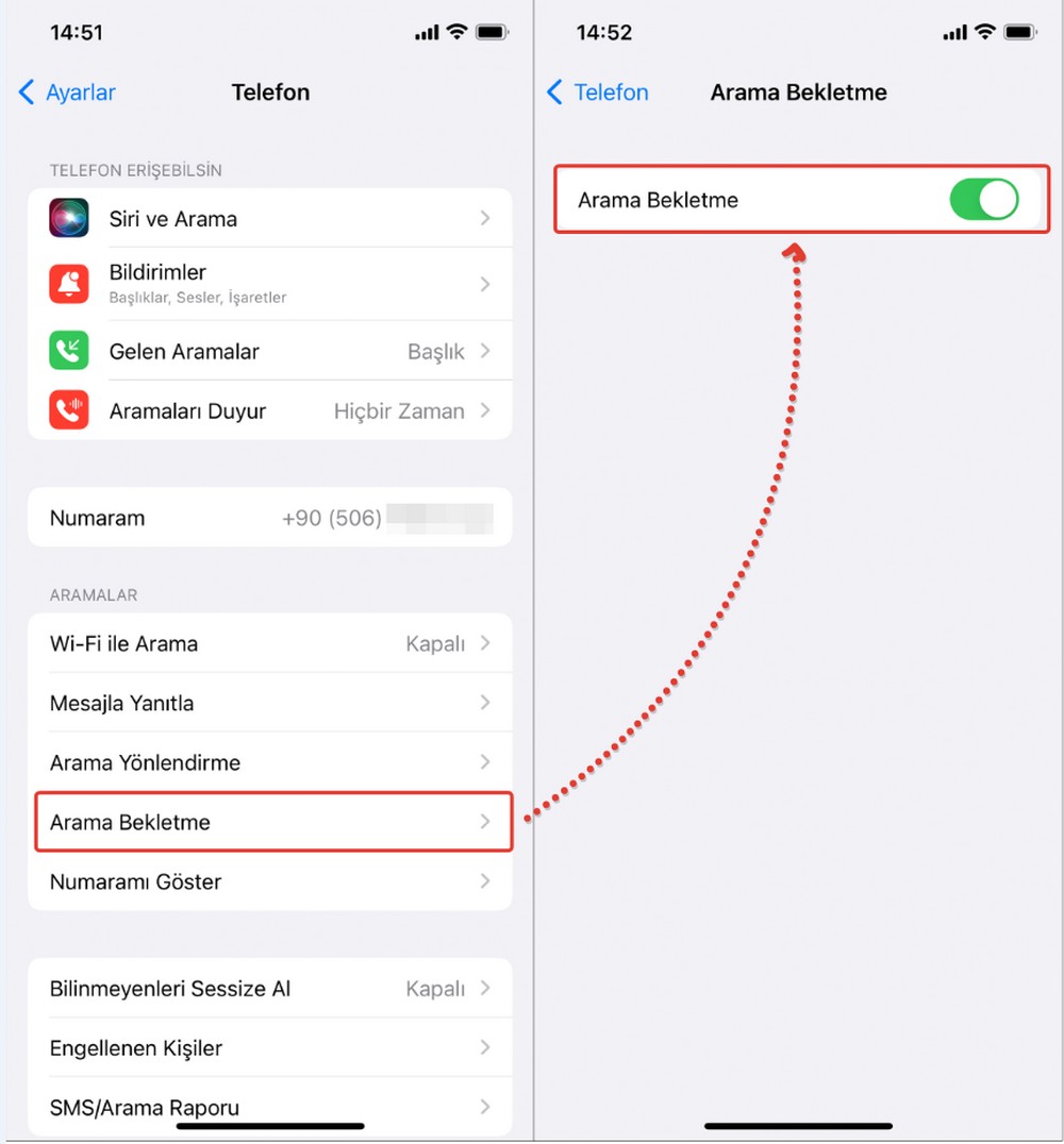 iPhone Arama Bekletme Açma