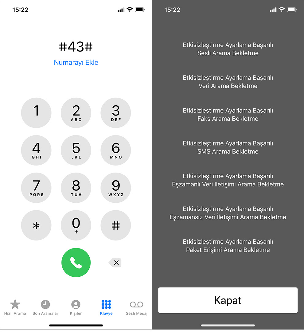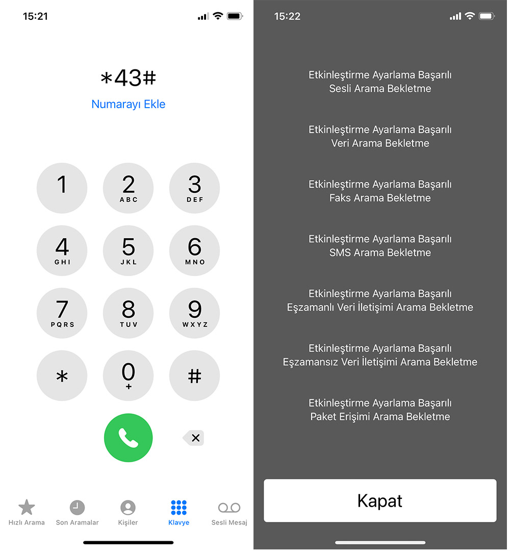 Birinci yöntemimizde telefonunun tuş takımından *43# tuşlayıp aramaya bastığınızda çağrı bekletme özelliğini açabilirsiniz. Çağrı bekletme özelliğini tekrar kapatmak için de tuş takımından #43# tuşlayıp aramaya basmanız yeterli olacaktır.