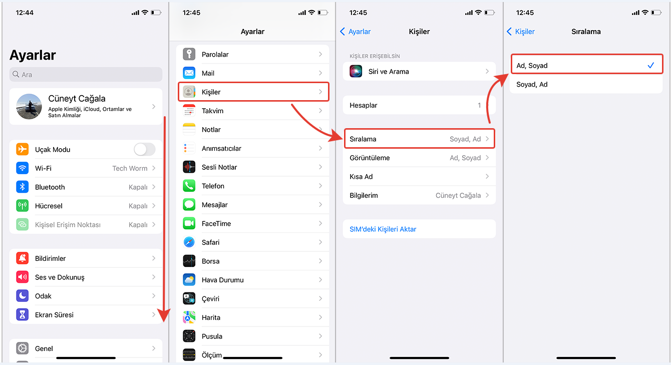 IPhone’da Kişilerin Sıralanma ve Görüntülenme Düzenini Değiştirme