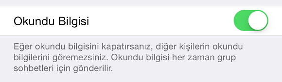 Yukarıda anlattığımız işlemleri uyguladıktan sonra sonra artık Okundu Bilgisi yanı mavi tık karşı taraftakinin telefonuna/cihazına iletilmeyecek.