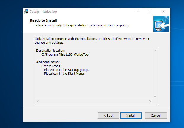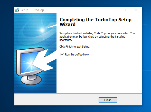 Son olarak “Completing the TurboTop Setup Wizard” penceresinde “Finish” diyerek kurulumu tamamlayalım.
