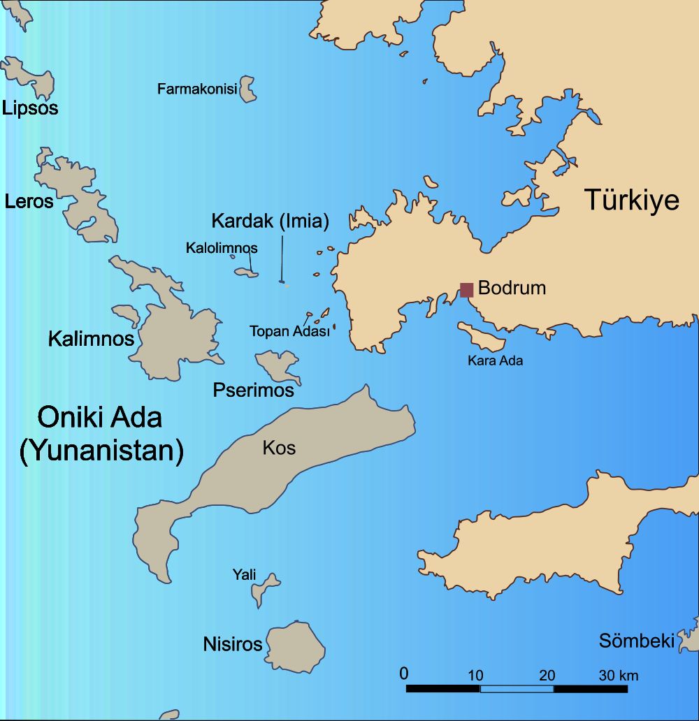 II. Dünya Savaşı öncesi koşullar çerçevesinde müzakere edilen 4 Ocak 1932 Tarihli Türk – İtalyan Sözleşmesi ile bölgenin güneyinde egemenlik düzenlemeleri yapılmış ve bu amaçla çekilen hattın kuzeyde üzerinde hiçbir tartışma olmayan hatla birleştiği ifade edilmiştir. Kardak Kayalıkları da içeren bu bölgeyle ilgili düzenlemeler ise 28 Aralık 1932’de hazırlanan bir metinde ele alınmıştır ve burada Kardak Kayalıkları açıkça İtalyan (sonra Yunan) tarafında görülmektedir. Ancak, bu metnin resmi olarak yürürlüğe girip girmediği tartışmalıdır ve Türkiye, Kardak Kayalıkları’nın aslında hiçbir zaman devredilmediği tezini de bu metnin bağlayıcı bir belge olmadığı iddiasına dayandırmaktadır. Nihayetinde, 1923 Lozan Antlaşması‘nın İtalya’ya devredilen adacıkları tanımlamak için kullandığı “bağlı adacıklar” ifadesinin içeriği 1932’de doldurulmaya çalışılmış, II. Dünya Savaşı‘nı takiben imzalanan Paris Antlaşması‘yla da ismen sayılan adalar ve “bitişik adacıkları” Yunanistan’a devredilmiştir. Bu durumda, Türkiye ile Yunanistan arasında tartışma konusu olan da Lozan Antlaşması’nın “bağlı”, Paris Antlaşması’nın da “bitişik” olarak nitelediği adacık (ve kayalıkların) hangi coğrafi formasyonları (ve özellikle de Kardak Kayalıkları‘nı) içerip içermediğidir.