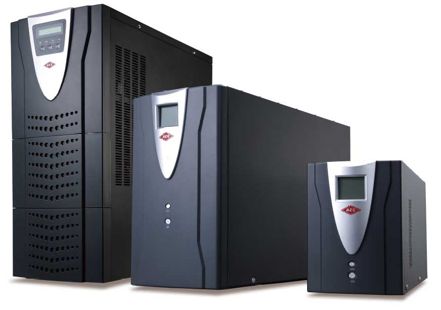 3- On-Line UPS’ler çıkış gerilimini sürekli olarak giriş şebekesinden doğrultarak elde ettiği için DC gerilimden üreterek sağlarlar. Şebeke gerilimi varken şarj ünitesi akü gerilimini dengeler. Şebekedeki gerilim değişimleri, giriş gerilimini hiçbir zaman etkilemez. Şebeke izolasyonu vardır. On-Line UPS’lerin, arıza yaptığında veya aşırı yüklendiğinde kendini koruyabilmesi için Static By-Pass üniteleri vardır. Çıkış dalga şekilleri tam sinüstür. Tam sinüs çıkış her türlü yükle sorunsuz çalışmasını sağlar.