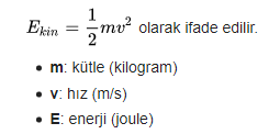 Kinetik enerji, bir cismin hareketinden dolayı sahip olduğu enerjidir. Eğer bir nesneyi ivmelendirmek istiyorsak, ona bir kuvvet uygulamamız gerekir. Kuvvet uygulamak iş yapmamızı gerektirir. İşin yapılmasıyla enerji nesneye aktarılır ve bu nesne yeni bir sabit süratle hareket eder. Aktarılan bu enerjiye kinetik enerji denir ve nesnenin kütlesine ve ulaştığı sürate bağlıdır.