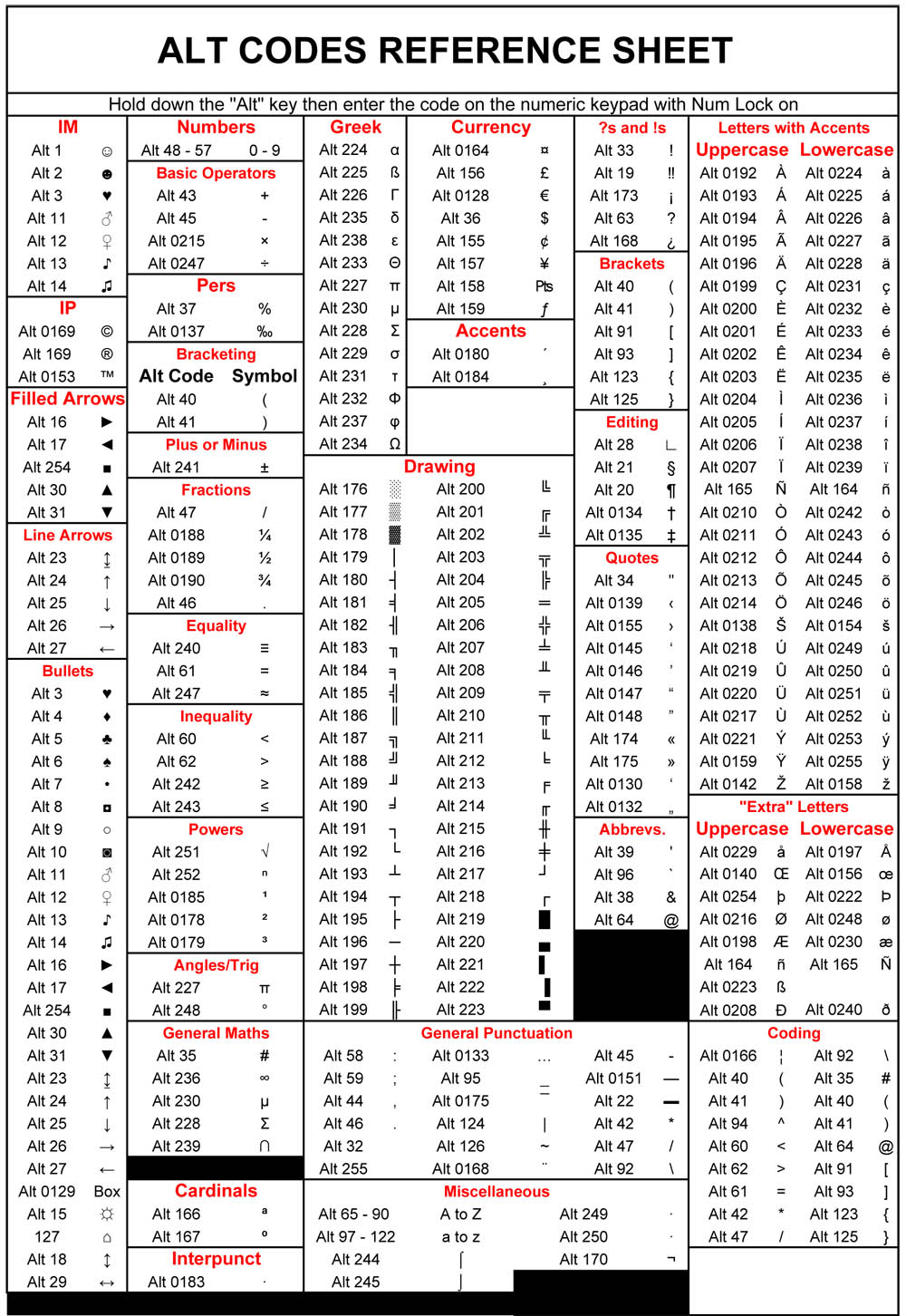 Ek bir bilgi olarak buradan hatırlatalım. ALT tuşu ve rakamları kullanarak bir çok karaktere ulaşmam mümkün. Bu aslında Windows ile gelen ve tüm Windows işletim sistemlerinde bulunan standart bir özellik. Aşağıda ALT tuşunu kullanarak ulaşabileceğiniz kısayollar verilmiştir. Fotoğrafı büyütmek için üzerini klikleyebilirsiniz.