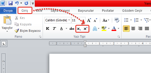 Aslında Word, Excel, PowerPoint gibi ofis programlarında 2 üssü gibi bir ifadeyi doğrudan programın kendisinde bulunan bir özellik. Bunu basit bir şekilde aşağıda görüldüğü üzere Microsoft Word’de “giriş” kısmında bulunan özelliği kullanabilirsiniz. Örneğin Word’de herhangi bir sayı veya harf yazdıktan sonra aşağıda gösterdiğim kısma kliklerseniz 2 üssü veya altı şeklinde değer elde edebilirsiniz.