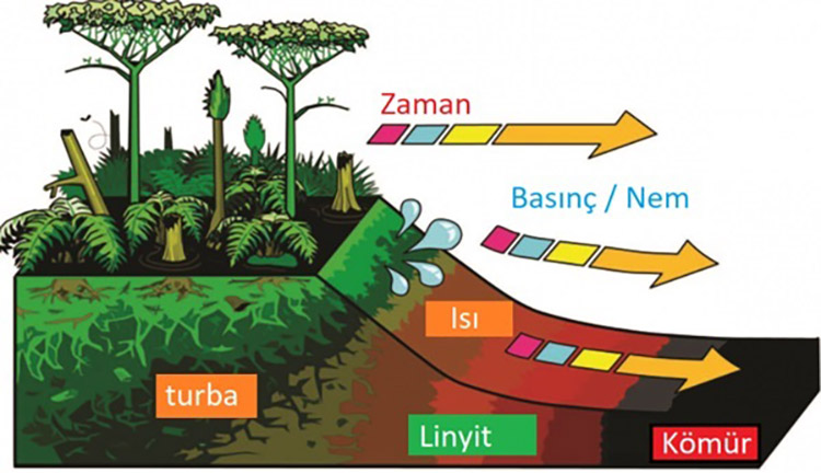 Turbalardan sonra daha yaşlı yani uzun dönemlerde oluşan kömürler sırasıyla linyit, alt bitümlü kömür, taş kömürü ve antrasit olarak adlandırılır. Sertlikleri de bu sıra ile artar ve turba en genç olanları antrasitler ise en yaşlı olanlarıdır. Rank değeri yükseldikçe yaş ile birlikte kalite ve ısıl değerler de artar. Yukarıda kömür oluşumu ve süreçleri verilmektedir (Şekil 2).