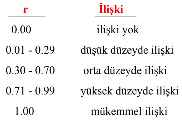 - r= 0 ise iki değişken arasında ilişki yoktur.
