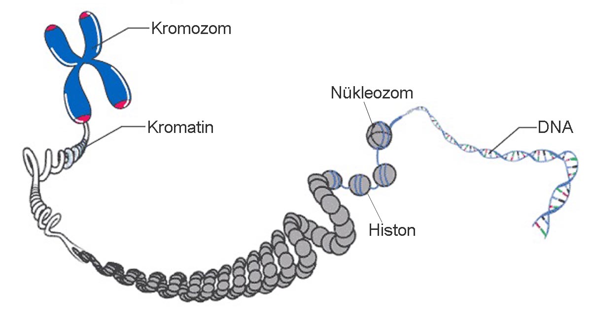 Hücre, bitkisel ya da hayvansal her türlü yaşam biçiminin en küçük birimidir. Her hücre bir sitoplazma ve çekirdekten (prokaryot canlılar hariç) meydana gelir. Genetik kalıtımı sağlayan kromozomlar hücre çekirdeği içinde bulunurlar ve ipliksi yapıdadırlar. Kromozomlar, molekül yapıları çok iyi bilinen DNA (deoksiribo nükleik asit) zinciri ile histon denilen protein zincirinden oluşur. DNA zincirleri de özgül proteinleri sentezlemekle görevli gen adı verilen birimlerden oluşur. Kromozomlar mikrometre boyutunda olup ancak elektron mikroskobu ile görüntülenebilmektedirler.