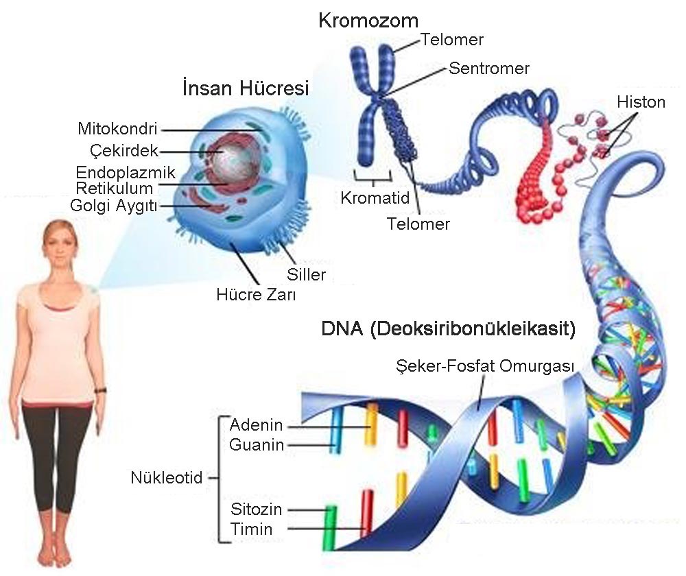 Kromozom; DNA’nın “histon” proteinleri etrafına sarılmasıyla, yoğunlaşarak oluşturduğu, canlılarda kalıtımı sağlayan genetik birimlerdir. Kromozomları “DNA paketleri” şeklinde düşünmek mümkündür. Bu açıdan bakıldığında kromozom da aslında bir DNA molekülüdür diyebiliriz. Tabii burada ufak bir farklılık söz konusudur. Her canlıda birden fazla kromozom bulunur; yani DNA ipliği tek bir şerit halinde değil, birden fazla noktada kırpılmış halde bulunur. İşte bu kırpılmış paketlere biz kısaca “kromozom” denir. Kromozomların tümü, doğal olarak bir canlının bütün genetik bilgisini barındırmaktadır. Bir canlının bütün genetik bilgisine genom adı verilir. Kromozomlar mikrometre boyutunda olup ancak elektron mikroskobu ile görülebilirler.