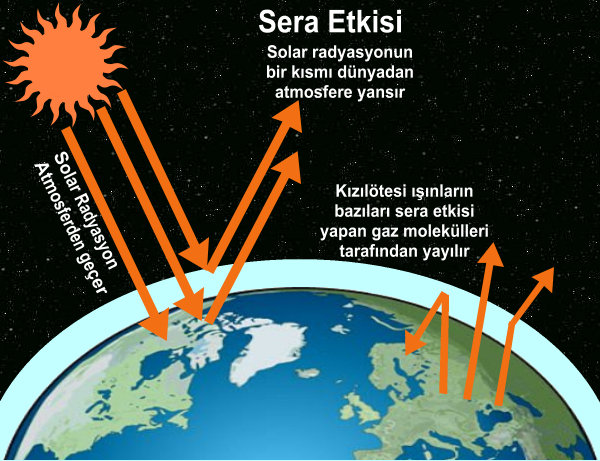Sera etkisi sonucunda dünyanın yüzey sıcaklığı hızla artmakta ve güneşten gelen ışınlar dünya yüzeyini terkedemediğinden meydana gelen sıcaklık buzulların hızla erimesine ve ekvator düzleminde olan bölgelerde kuraklığa neden olmaktadır.