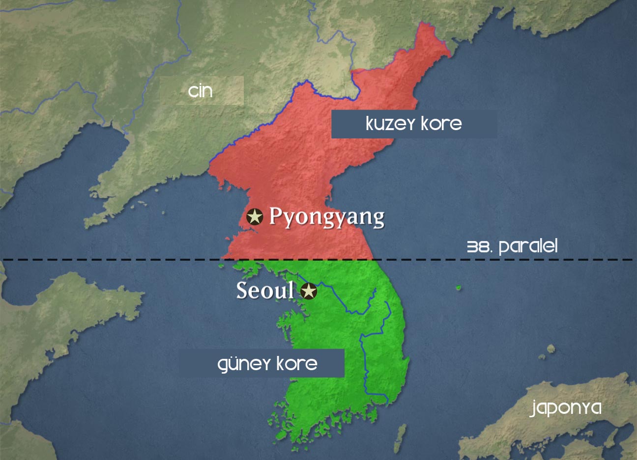“38.Kuzey Paralelinin” kestiği bu iki devlet 1950 yılında yılın da meşhur Kore Savaşı’nın fitilini ateşledi. Yaklaşık 3 yıl süren bu savaşta Güney Kore’yi ABD, Kuzey Kore’yi ise Çin ve Rusya destekleyince 3 milyon insan savaşta hayatını kaybetti.
