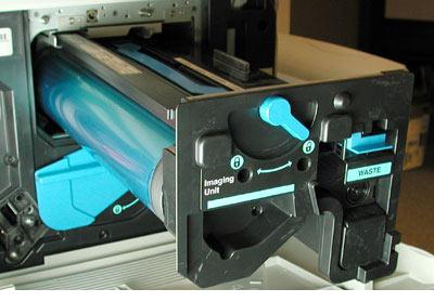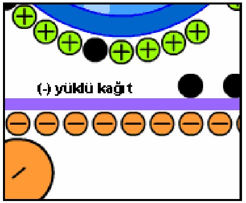 4- Bu esnada kâğıt zaten yazıcının içine girmiştir ve bir şarj silindiri tarafından negatif (-) yükle yüklenmiştir. Drumun dönmesiyle kâğıt hizasına gelen toner parçacıkları negatif (-) yüklü kâğıt tarafından kâğıt üzerine çekilir. Böylece karakterler kâğıt üzerine aktarılmış olur.