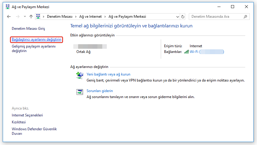 2- Açılan pencereden “Bağdaştırıcı Ayarlarını Değiştir” diyoruz.